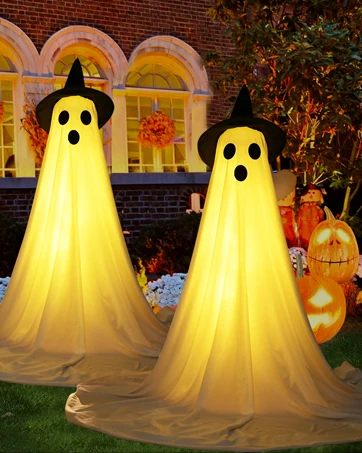 2 Packs Glow-in-the-Dark Halloween Ghosts for Yard & Home Decoration