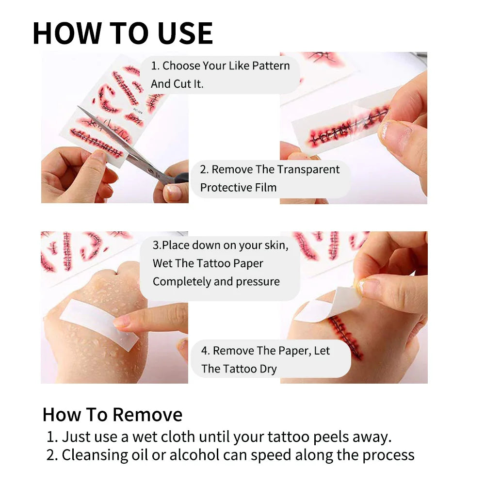 24 Sheets 3D Halloween Fake Scar & Zombie Temporary Tattoos for Adults