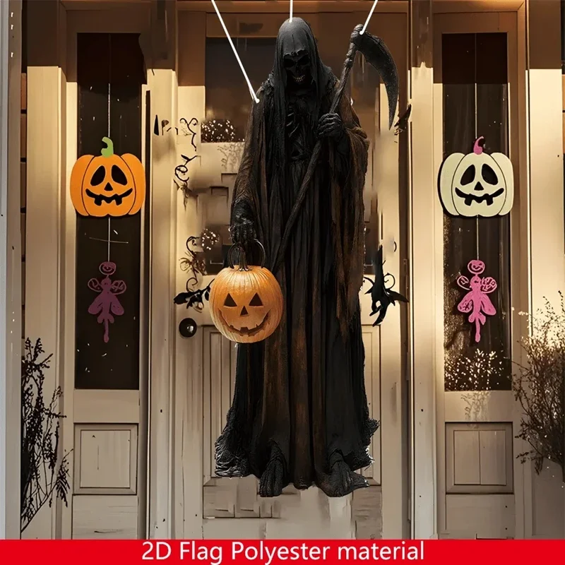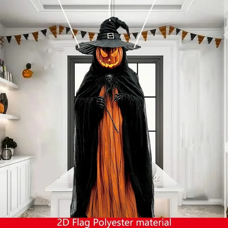 2D Halloween Evil Pumpkin Man Hanging Background Cloth for Indoor & Outdoor Decor