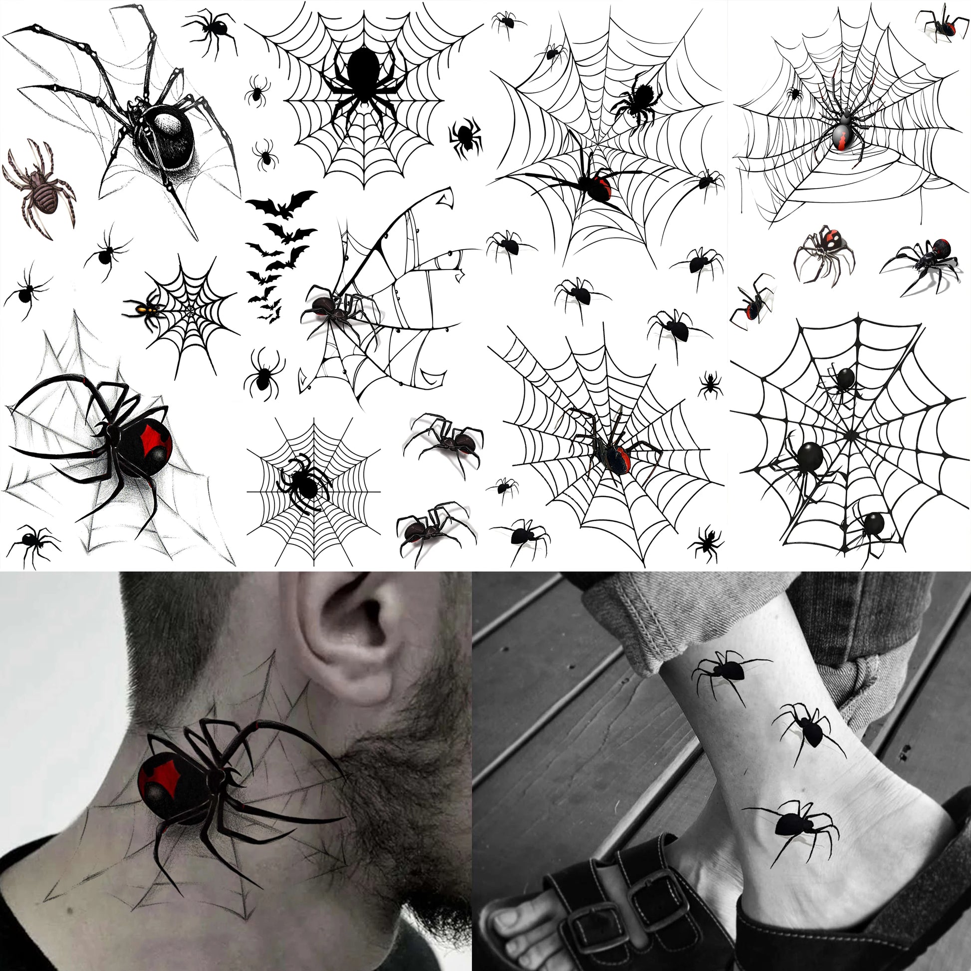 8 Sheets Realistic 3D Spider & Spiderweb Temporary Tattoos for Halloween