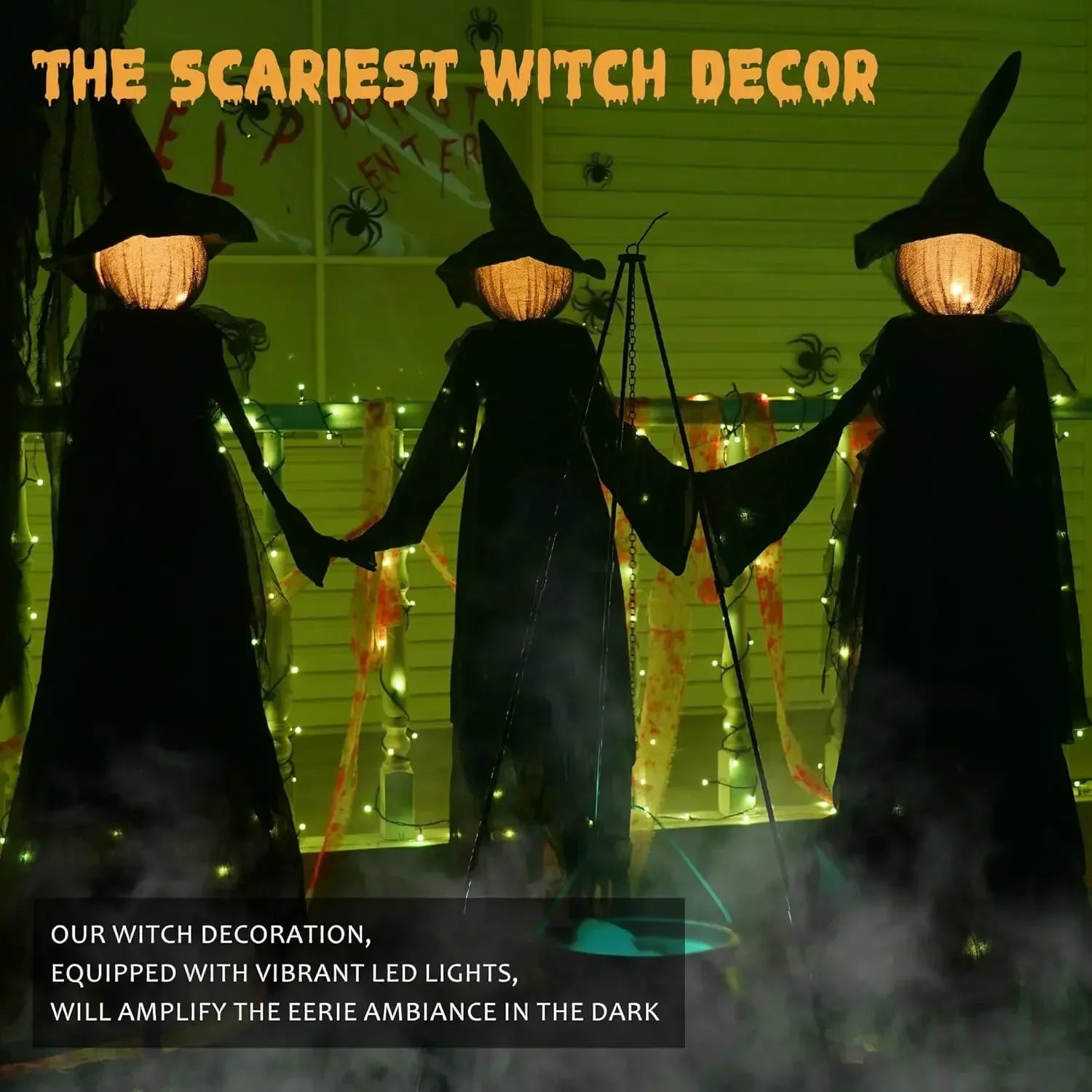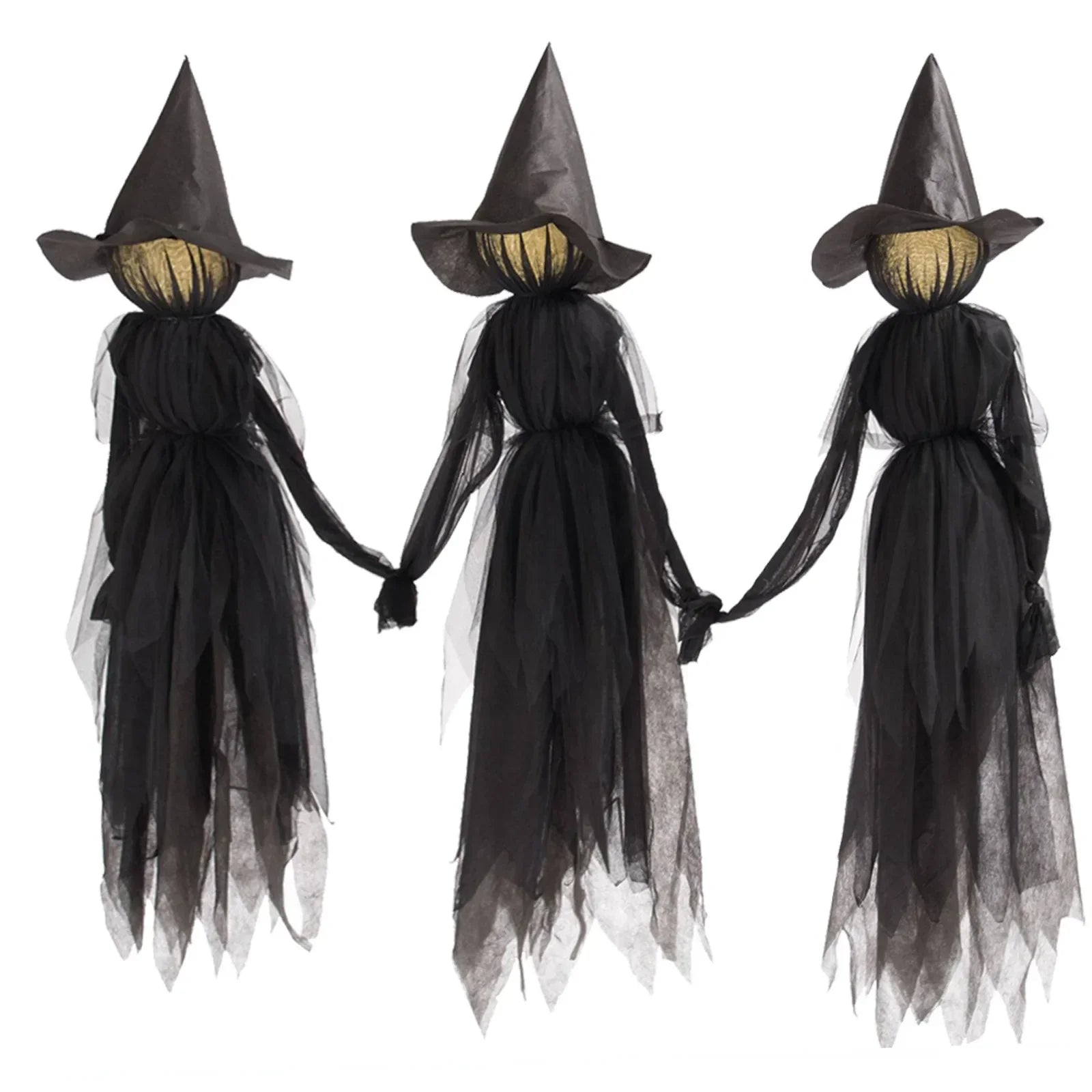Halloween Colorful Glow 3 Hand-Holding Witches Sound-Activated Light-Up Decoration